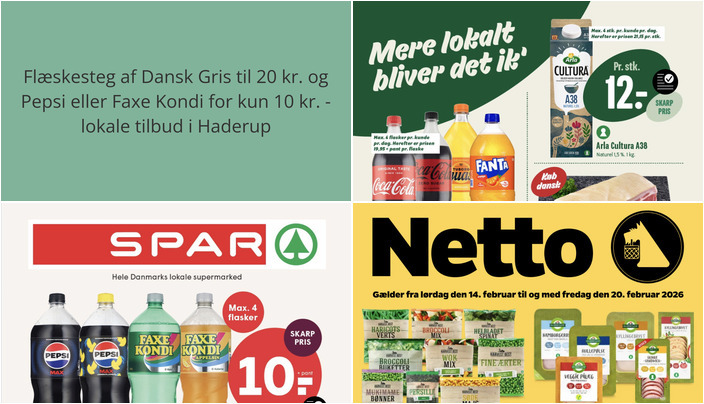 Vi har gennemgået denne uges tilbudsaviser fra dagligvarebutikker i Haderup og fundet nogle fantastiske tilbud. Her er et udvalg af de bedste tilbud fra Min Købmand, Netto og Spar.
