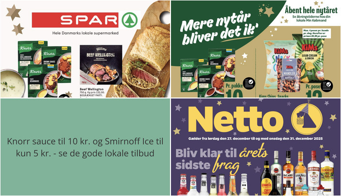 Netto tilbyder Smirnoff Ice til den skarpe pris af 5 kr. pr. stk. Flaskerne er på 27,5 cl + pant, og der er en begrænsning på 24 stk. pr. variant pr. kunde pr. dag. Tilbuddet gælder fra lørdag den 27. december til onsdag den 31. december 2025.